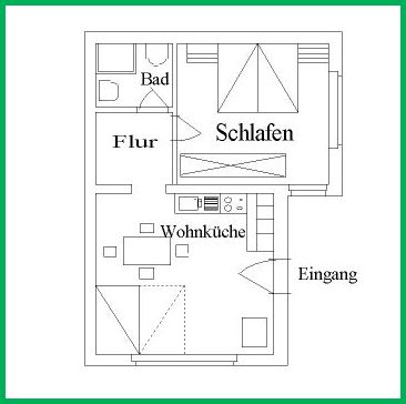 ca.40 qm groß 1 Schlafzimmer, komplett eingerichtet